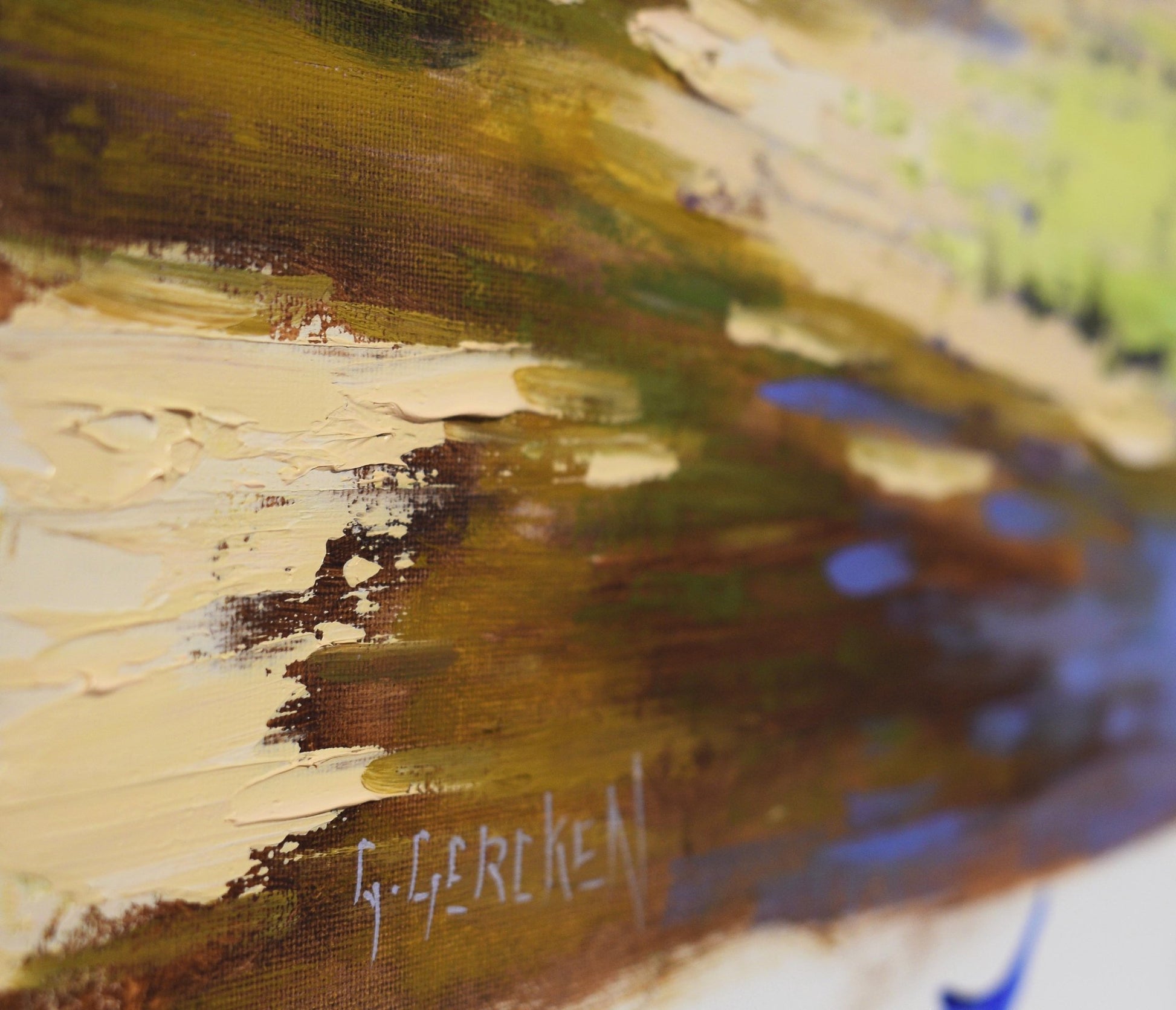 This original oil painting captures the rolling hills and winding river of the Central West NSW, painted in rich, expressive colour with confident palette knife and brushwork. Lush greens, warm earth tones, and reflective water create a strong sense of movement and depth across the landscape.
