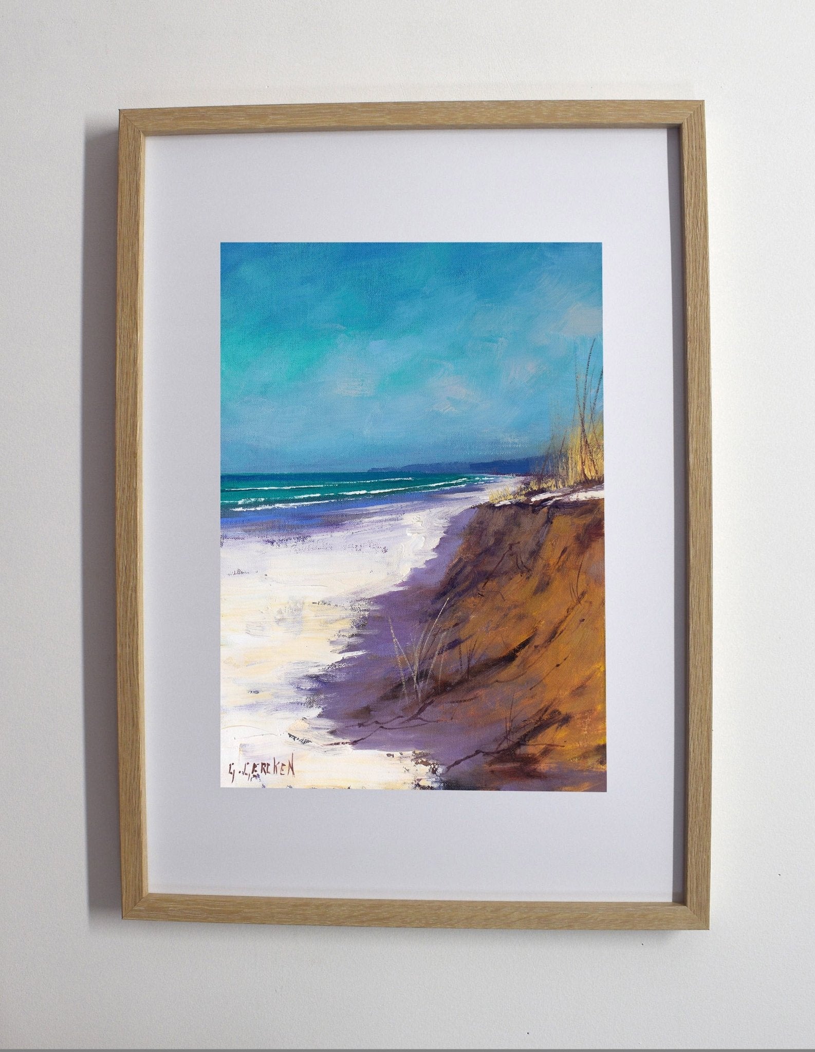 Framed Beach oil painting by Graham Gercken