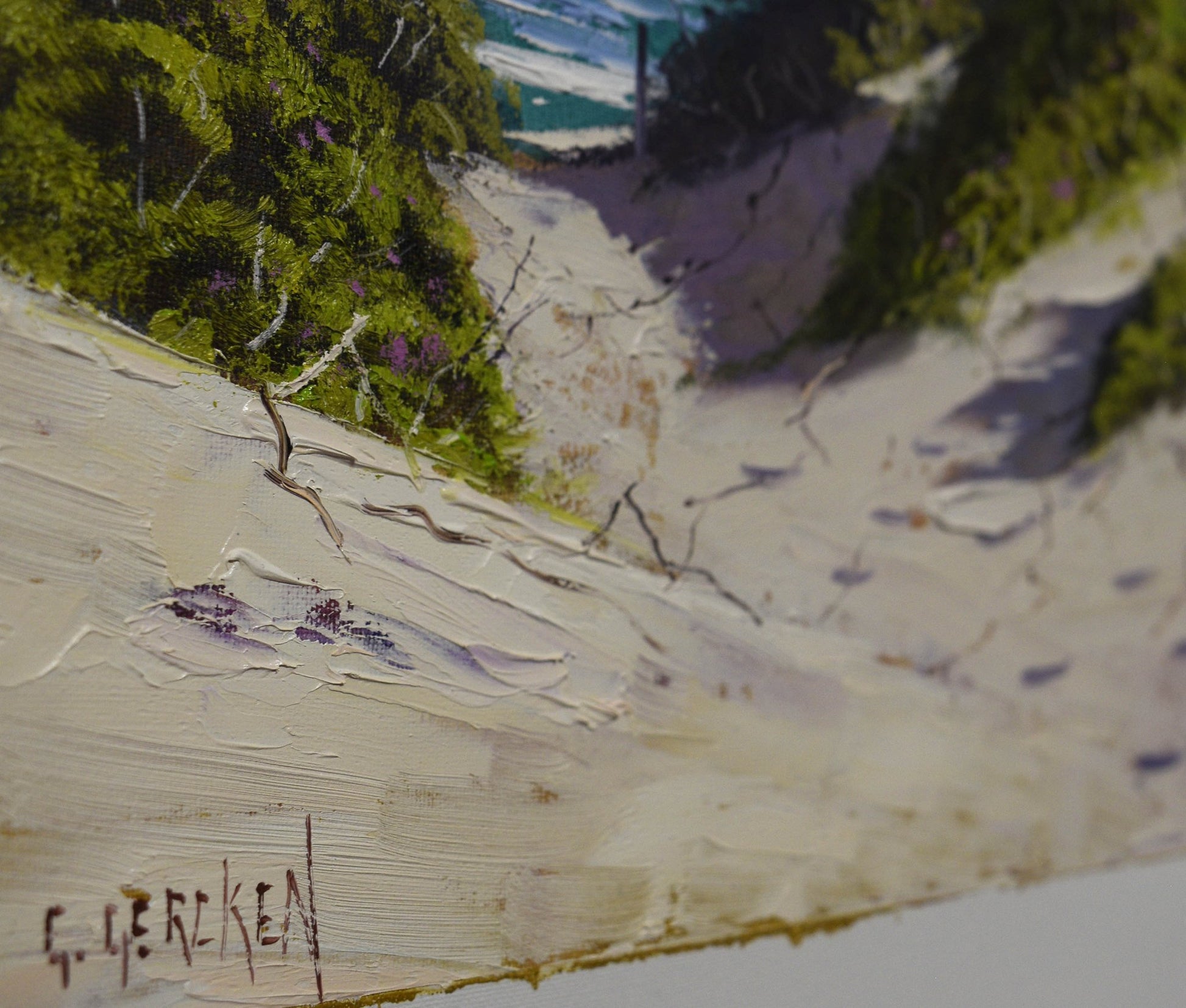 Graham Gercken’s paintings are collected internationally for their luminous light, authentic Australian atmosphere, and timeless appeal. This coastal landscape brings a sense of calm and natural beauty to any home or office space.