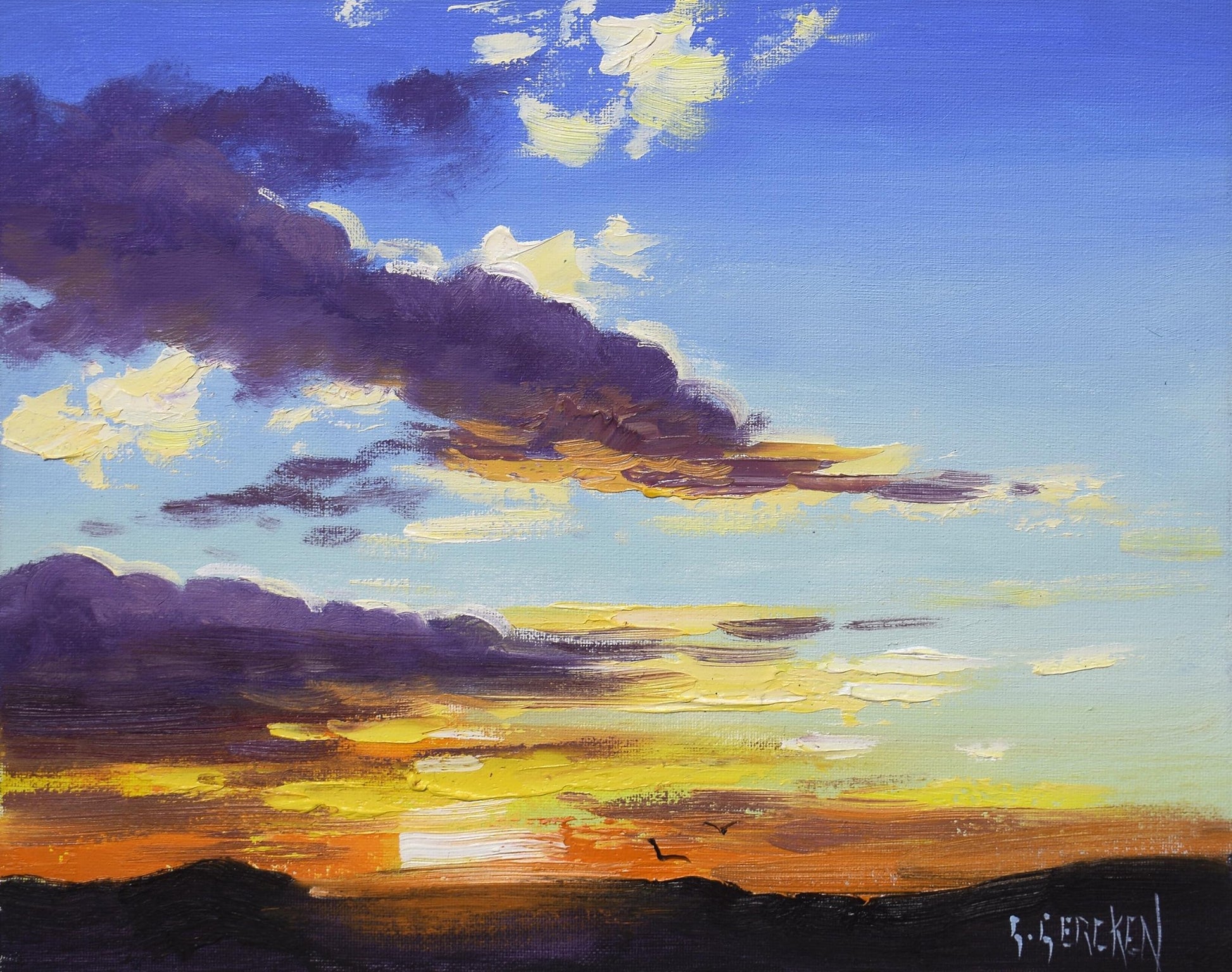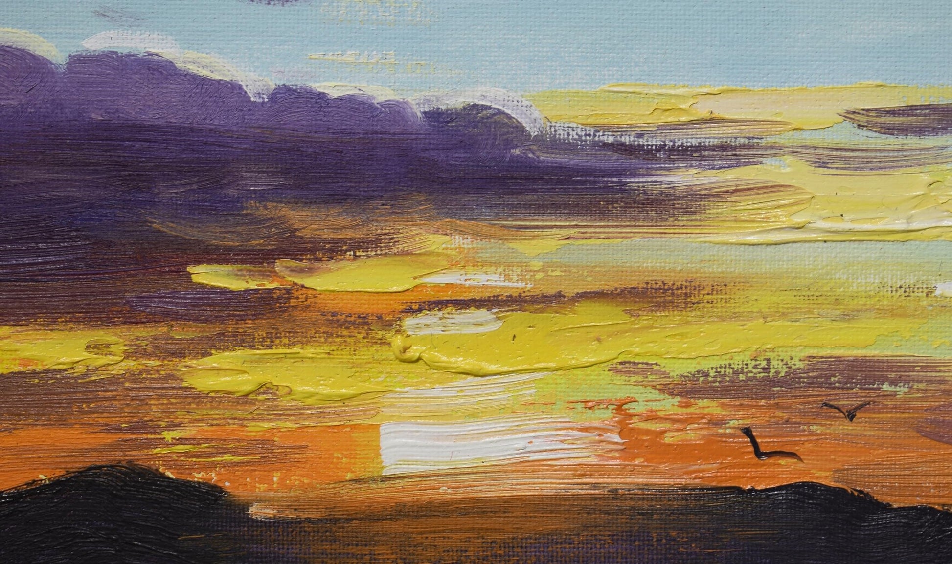 Experience the thrill of the outdoors with this stunning country landscape painting by Graham Gercken. Bold brushstrokes capture the vibrant colors of a sunset, while the carefully chosen framing elevates the art to a whole new level. Add this piece to your collection and let it inspire you to seek out new adventures! Measuring 10 x 8 inches in image size and 15 x 12 inches in frame size, it is ready to hang