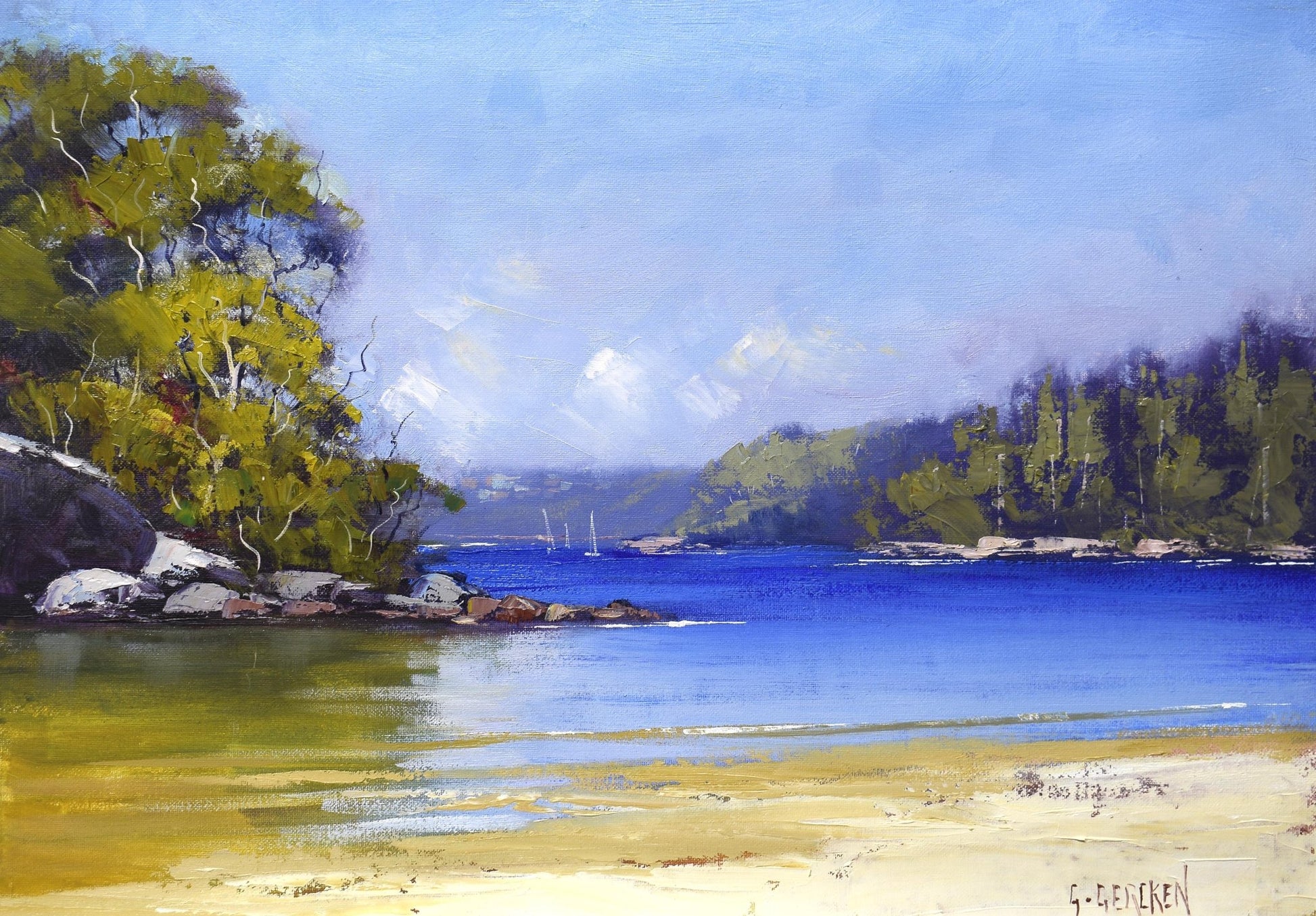 Experience the serene beauty of Sydney Harbour with this framed original oil painting of Collins Beach by Graham Gercken. Expertly crafted, it captures the tranquil coastal scene, bringing a peaceful and inspiring atmosphere to your space. Perfect for art lovers seeking a genuine connection to Australia’s iconic landscapes.