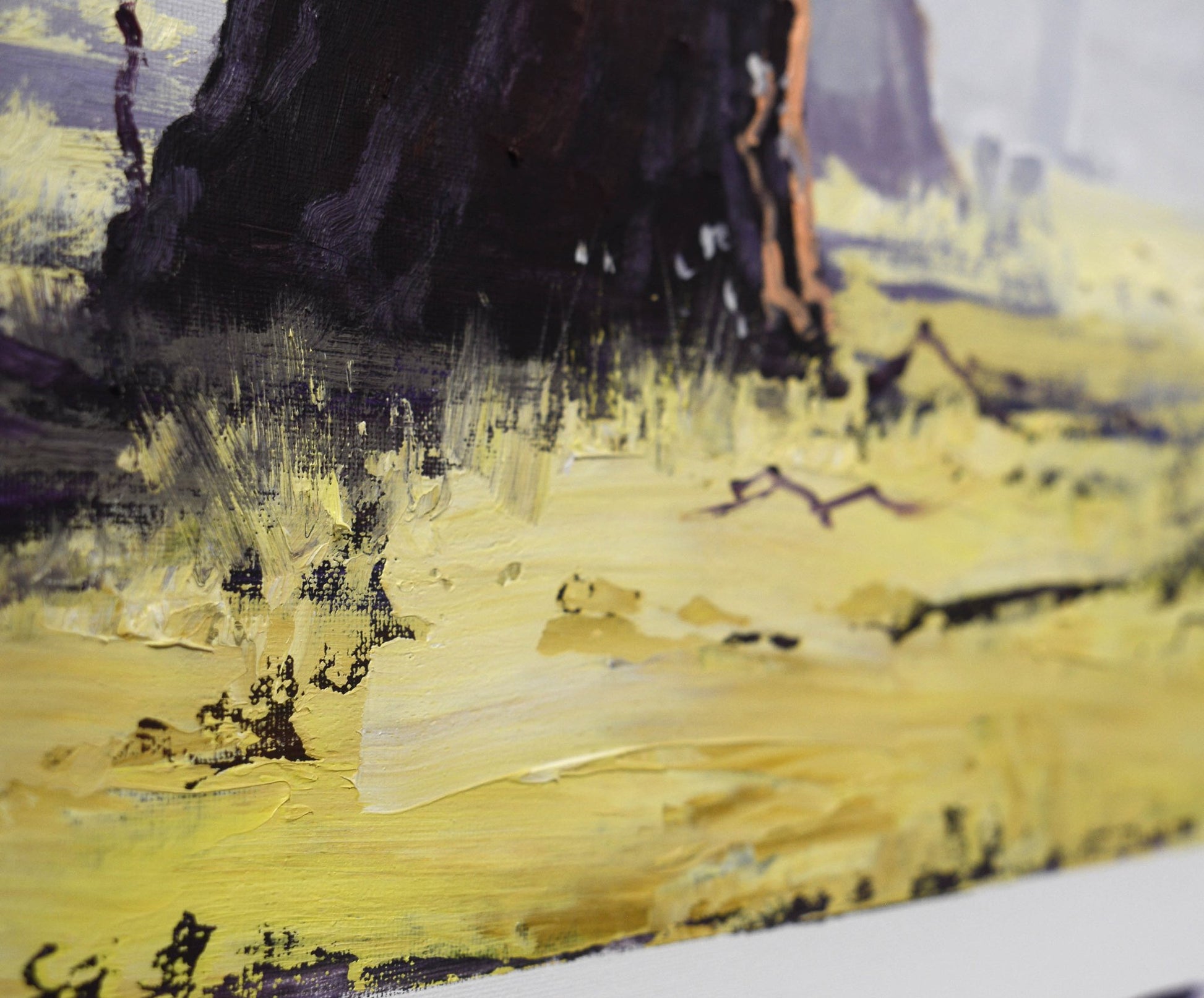 The painting is stretched and ready to hang, with the image continuing around the edges for a clean, frameless presentation. This is a one-of-a-kind original artwork, signed by the artist and not a print or reproduction.