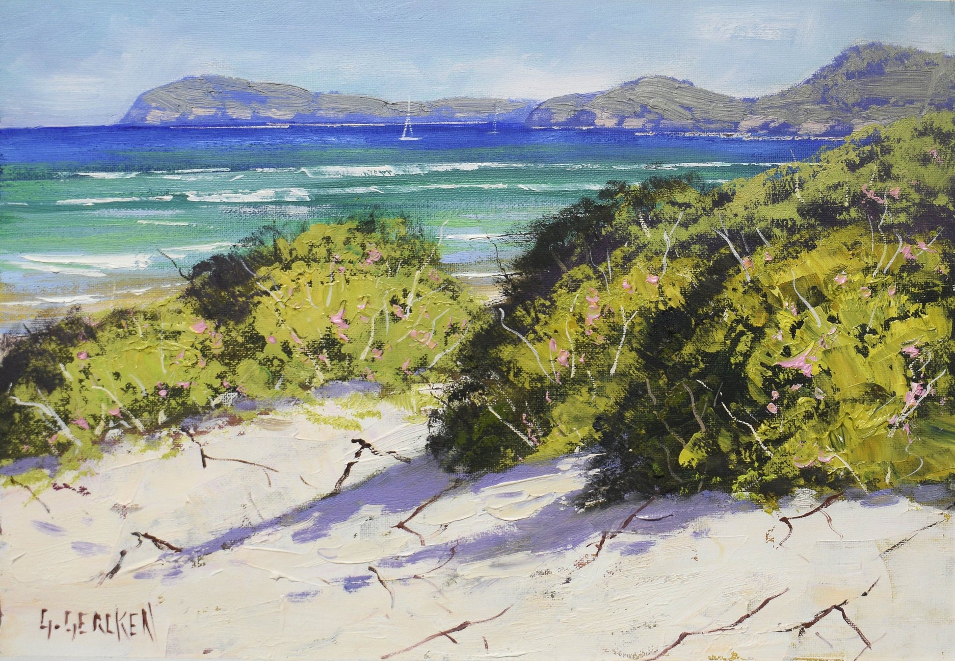 Experience the beauty of an Australian sandy beach with this stunning painting by Graham Gercken. Transport yourself to the Port Stephens in  NSW with his intricate brushstrokes and vibrant colors.